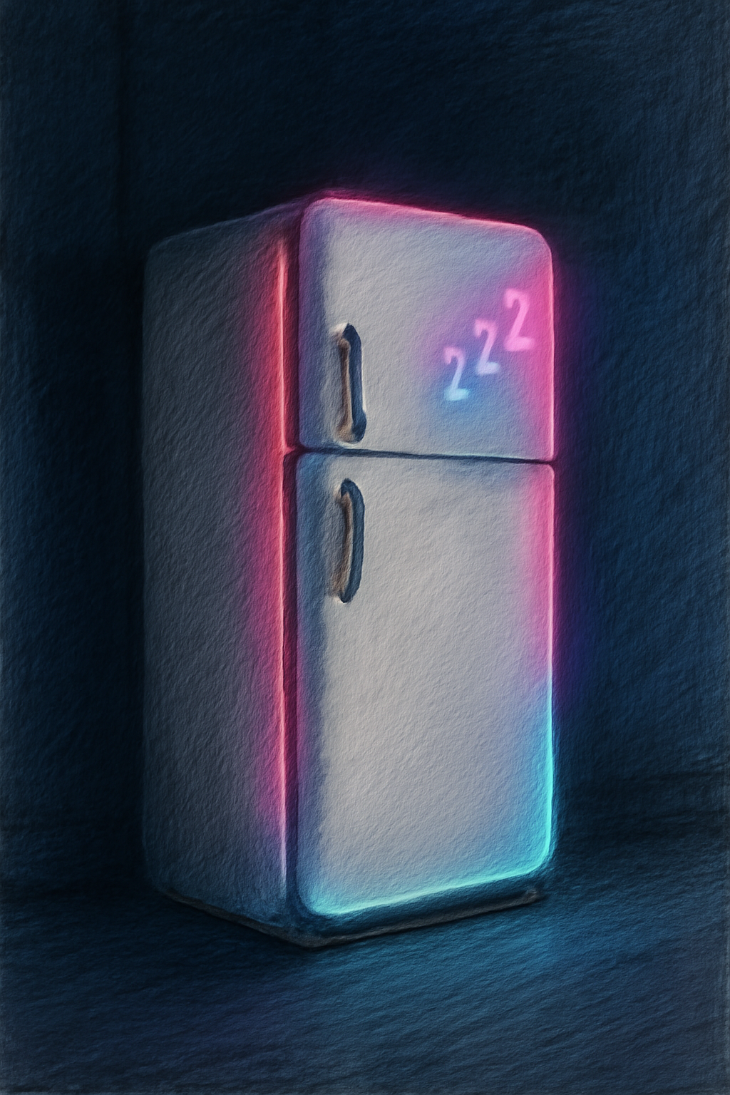 Pas vers le chant des oiseaux, pas vers le souffle du vent… mais vers le ronron obstiné, l’agonie feutrée, le soupir mécanique du frigo.